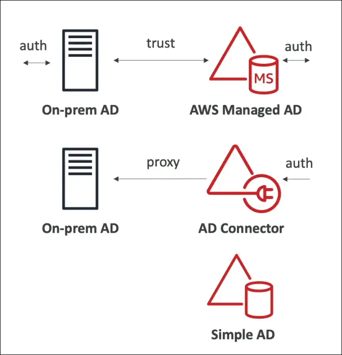 | AD Connector | Proxy to on-premises AD | Yes | Partially | Use existing AD without migration |