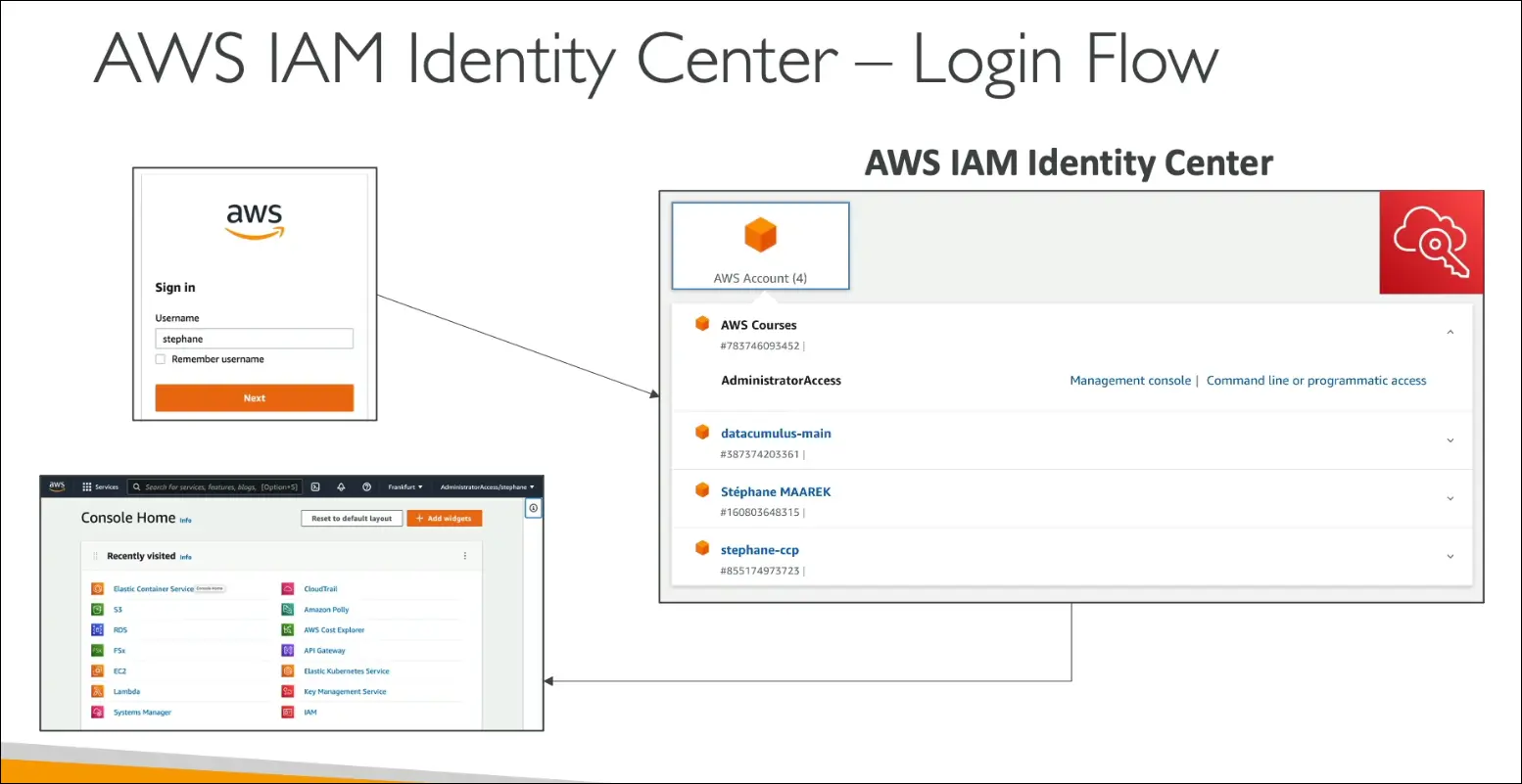 | Exam Keyword | “One login for multiple AWS accounts” → IAM Identity Center |