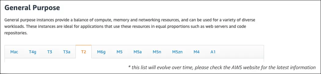 Detail of Each Instance ->: https://instances.vantage.sh Each Category Details ->: https://aws.amazon.com/ec2/instance-types