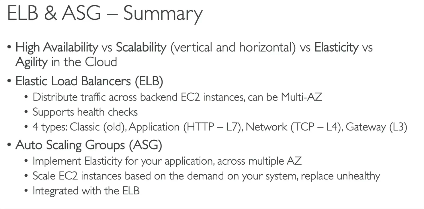 - Elasticity = Auto Scaling adjusts resources automatically based on demand.