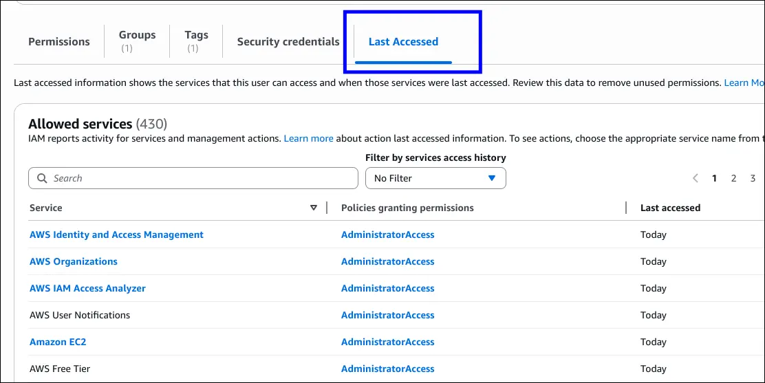 IAM Access Advisor/Last Accessed (User-level)