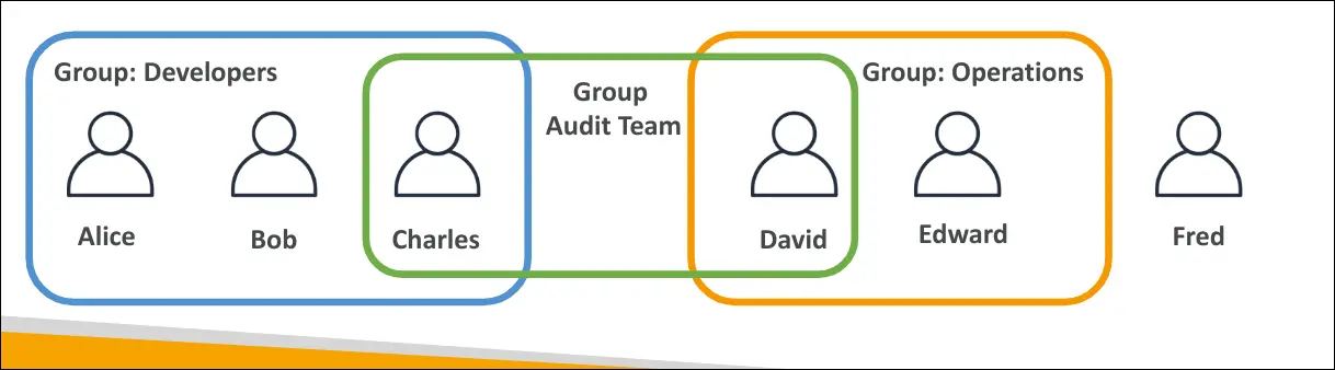 - Developers group: Alice, Bob, Charles.