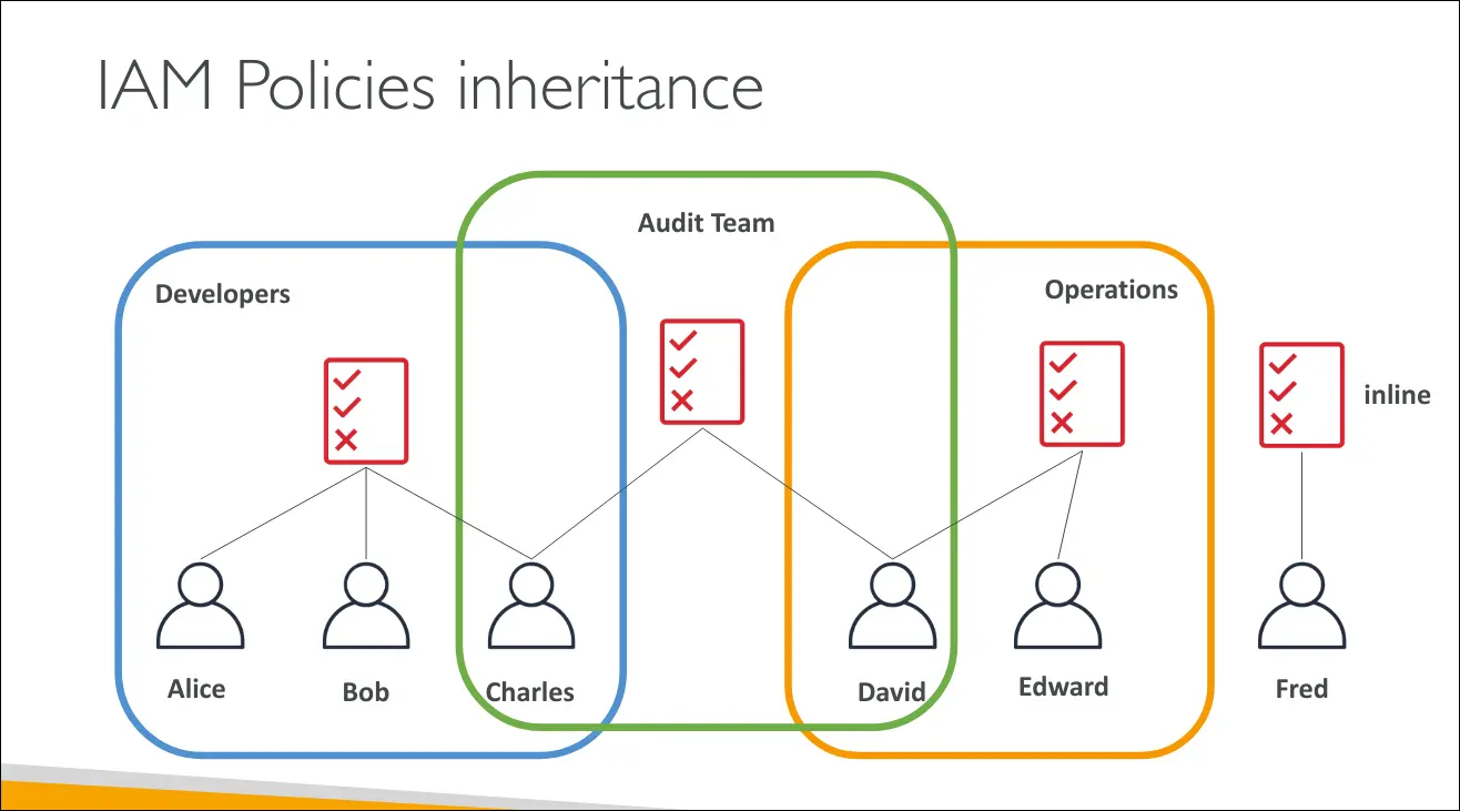 - Users or groups are assigned IAM Policies.