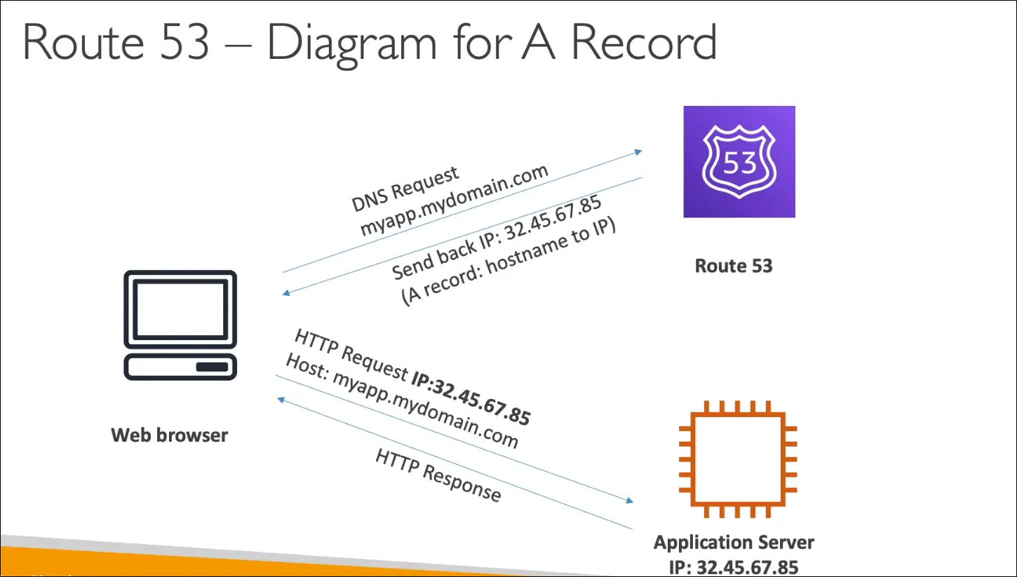 - Route 53 returns the mapped IP (from an A/AAAA record).